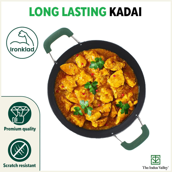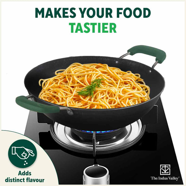 100% Pure Sheet Iron Kadai with Silicon Handle, Seasoned, Toxin-free
