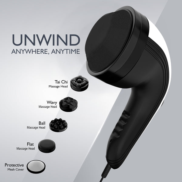 AGARO Atom Plus Electric Handheld Full Body Massager, 4 Massage Heads, Mesh Cover, Variable Speed Settings for Pain Relief and Relaxation, Back, Leg & Foot