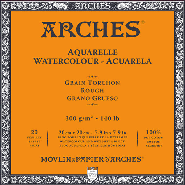 - Product: Watercolour Paper Blocks, Texture: Rough, Colour: Natural White, Edges: 4 Cut Edges, Thickness: 300GSM, Size:20 x 20 CM.