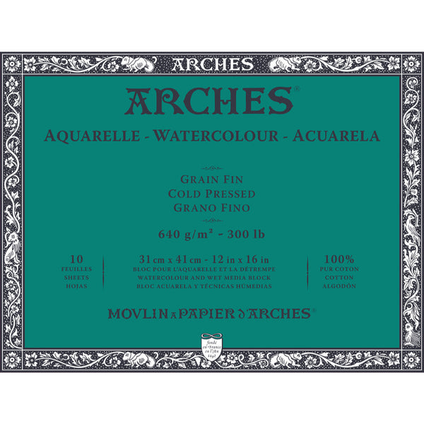 Arches Watercolour Paper an inimitable paper of the highest quality and is 100% cotton paper. Over the centuries, quality has always been paramount and today the manufacturing process brings together traditional techniques with the very latest advances in papermaking technology. Arches paper is made in the village of Arches in the Vosges, France. The high-quality water supplied by river provides optimum conditions to produce excellent paper.This legendary paper is still made with natural cotton fibres, carefully selected for their absorbency and durability. Arches Watercolour Paper is mould-made. The cylinder-mould machine ensures that fibres are evenly distributed which makes the paper extremely stable, so it will not warp or stretch when water is applied to it. Its composition with long fibres of 100% cotton gives the paper its strength, beauty, a natural, lasting whiteness and an inimitable touch with the look and feel of a vintage hand-made paper. Arches is the only paper mill in the world to gelatine size its watercolour paper "to the core". It also allows paints to be removed, either wet or dry, easily revealing the whiteness of the paper. Arches Watercolour can absorb a large amount of water with limited deformation. Arches Watercolour Paper are with 100% cotton fibre content. They are acid-free, pH-neutral, gelatine-sized, Chlorine Free and air-dried. Sheets have two natural deckle edges, two torn deckle edges, and are watermarked and embossed.