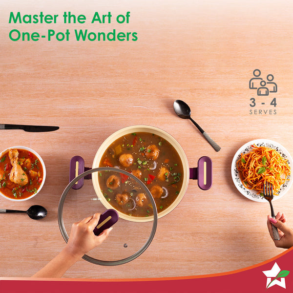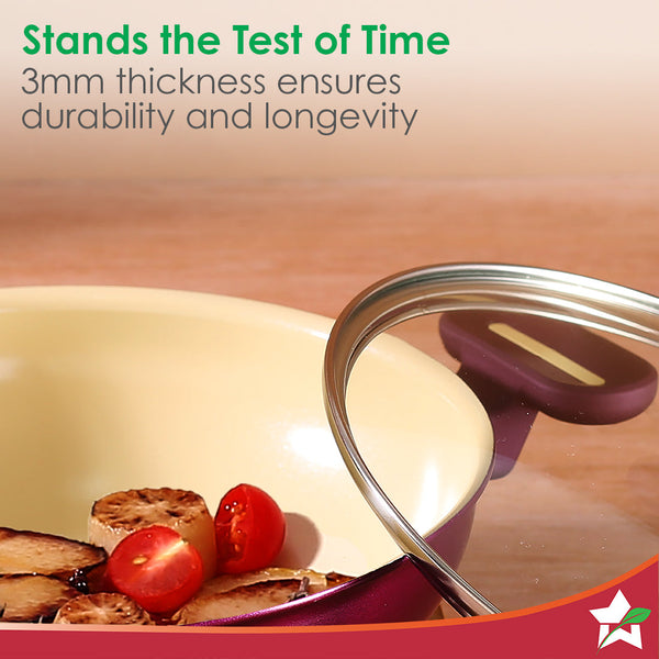 Bellagio Kadhai with Lid | Non-Stick Ceramic Coating | Non-Toxic | Pure Aluminium | PFAS and PFOA Free | 3mm Thickness | Two-Tone Soft-Touch Handles and Knob | Firm Grip | 2 Years Warranty