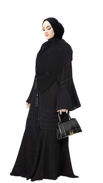 BURAQUE DESIGNER Nida fabric Free Size Muslim Burqa/Abaya & Burkha Dress for Muslim women and Girl's (P03-Black Stone-Burkha)