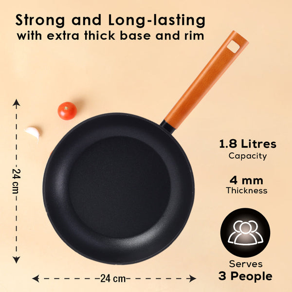 Caesar Forged Fry Pan, 24cm, Black, Healthy Greblon C3 Non-stick Coating, Made from Virgin Aluminium, PFOA Free, German Beechwood Handles, Use for Frying, Sauteing, Roasting, Easy to Clean