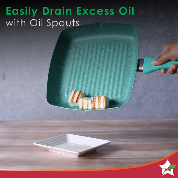 Wonderchef Renewed Celebration Non-stick 24cm Grill Pan | Induction Friendly | Soft Touch Handle | Pure Grade Aluminium | 2.2mm | PFOA/Heavy Metals Free