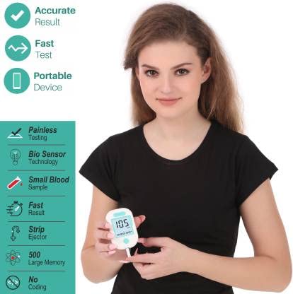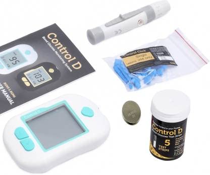 Control D Advanced Digital Diabetes Glucose Blood Sugar Testing Monitor with 5 Strips Glucometer (White, Green)