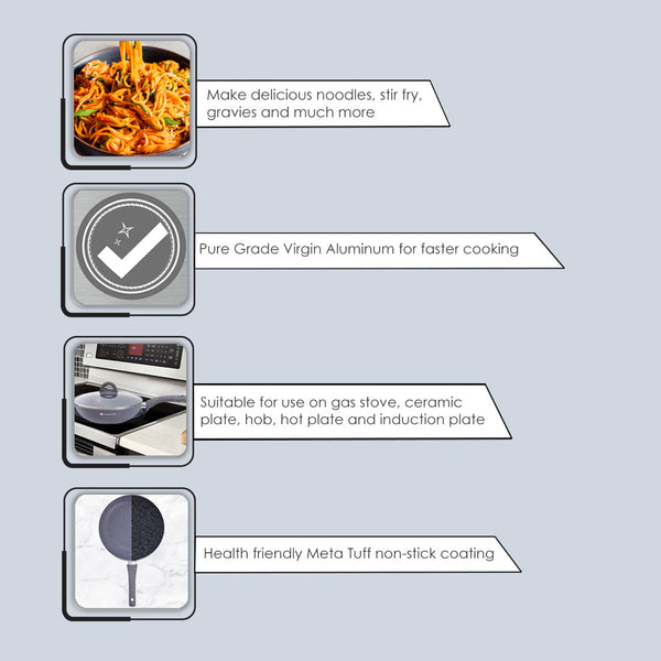 Wonderchef Renewed Granite 26cm Non-Stick Wok (without Lid) | 3.1L | Induction Bottom | Soft-Touch Handles | Virgin Grade Aluminium | 3.5mm Thick | PFOA and Heavy Metals Free