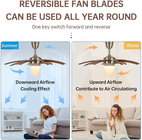 oltao Susan Chandelier Ceiling Premium Deluxe Fan - Golden Finish | with BLDC Motor, Reverse Air Flow for Summers & Winters, 8 Retractable Blades, LED Light & Remote Control