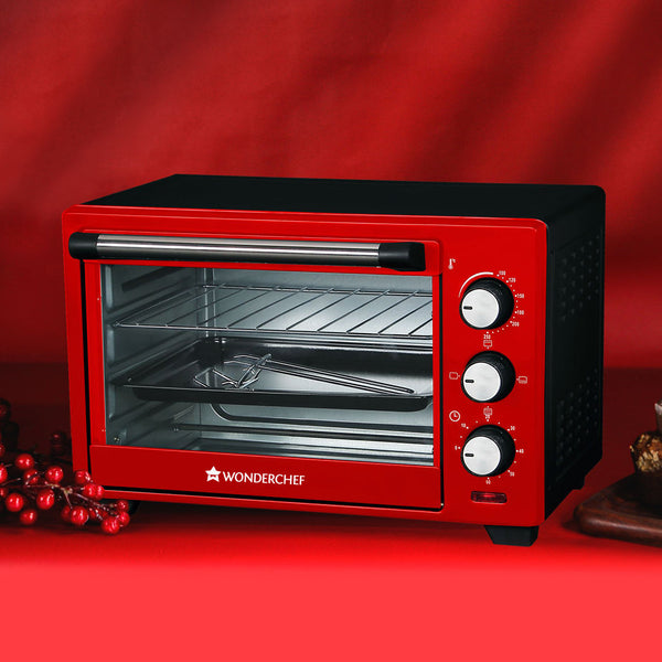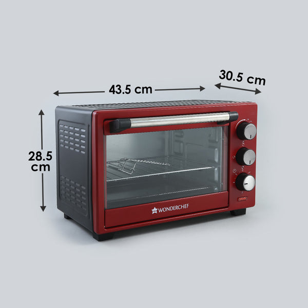 Wonderchef Renewed Oven Toaster Griller (OTG) Crimson Edge - 19 Litres | Auto-shut Off | Heat-resistant Tempered Glass | Multi-stage Heat Selection | 1280W | Red