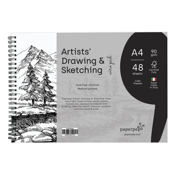 Paper Pep brings you a select range of drawing and artist quality fine papers made to exacting specifications from a high quality cellulose mix. Ideal for different techniques, from dry or hyper-wet to marker or sketch, make them the perfect and complete range for both students and artists. Produced with FSC certified pulps from responsibly managed forests that are respectful of environmental, social and economic standards. Paperpep Artists' Drawing & Sketching with a high bulk and a light ivory shade. Manufactured with an acid free process, which complies with ISO 9706, to give long-lasting stability. The light rough surface is resistant to erasures and scraping and creates enough friction to grab properly applied pigments. It is recommended for students, artists' and amateurs for fast sketching and drawing with pencil, charcoal, graphite, redchalk pastel & chalk. Also recommended for oil pastel & wax crayon. It is also acid & chlorine free. Made in Italy. Available in size A3, A4, A5, 4 x 6 Inch and 200 & 90 GSM.