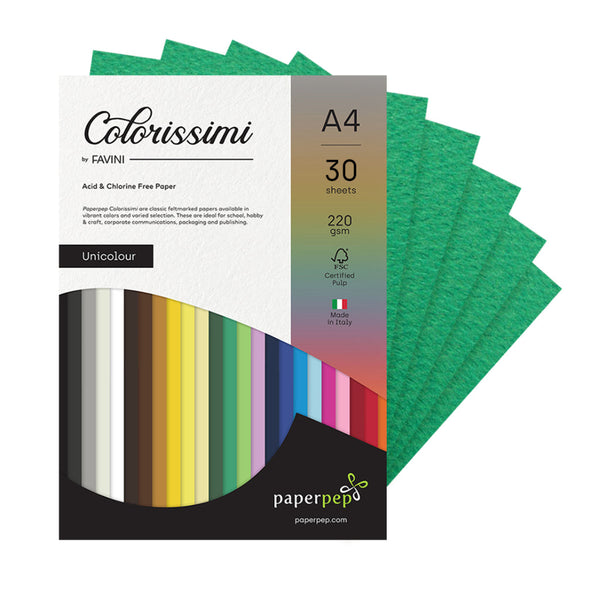 Paper Pep Colorissimi Card Stock 220Gsm A4 Verde (Green) Unicolor Pack Of 30 Sheets