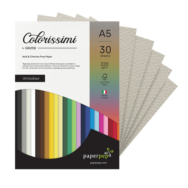 Paper Pep Colorissimi Card Stock 220Gsm A5 Grigio (Light Grey) Unicolor Of 30 Sheets