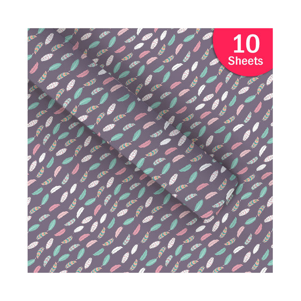 Paperpep Grey Multiple Feather Print Gift Wrapping Paper 19"X29" Pack Of 10 Sheets For Gift Packing Birthday, Anniversary, Diwali, Christmas, All Occasions & Events, Crafts, Return Gifts