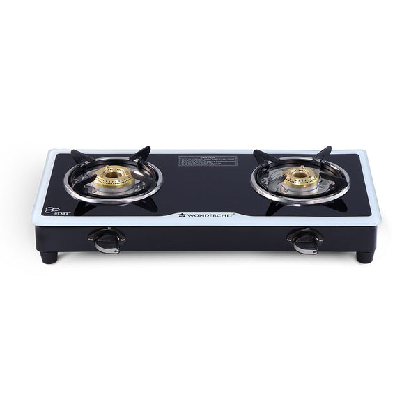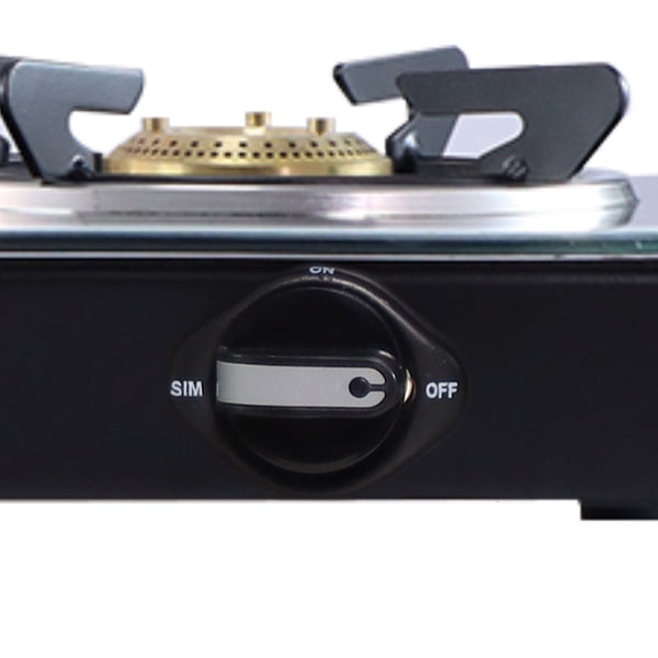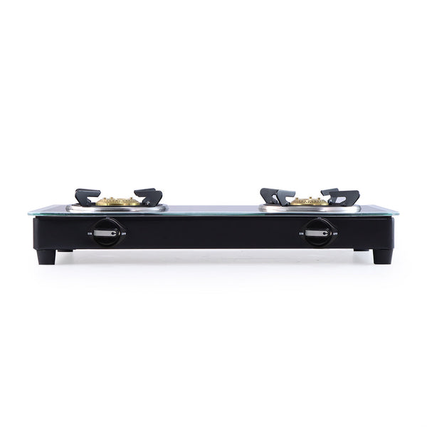 Platinum 2 Burner Glass Cooktop, Black 6mm Toughened Glass with 1 Year Warranty, Ergonomic Knobs, Stainless Steel Drip Tray, Manual Ignition Gas Stove