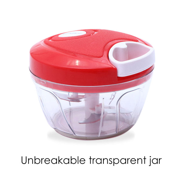 Platinum String Chopper with 3 Sharp Stainless Steel Blade 450 ml, Anti Slip Silicone, Compact, White and Red, 1 Year Warranty