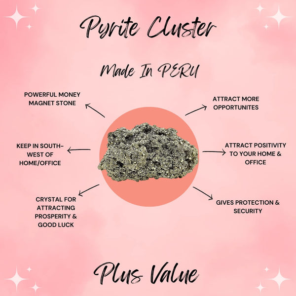 Plus Value Natural Pyrite Iron Golden Raw Stone Cluster Rough Rock Peru Pyrite Gemstone for Attracting Wealth, Attracts Abundance, Business Luck, Money Magnet (100 to 200 grams, 1 Piece)