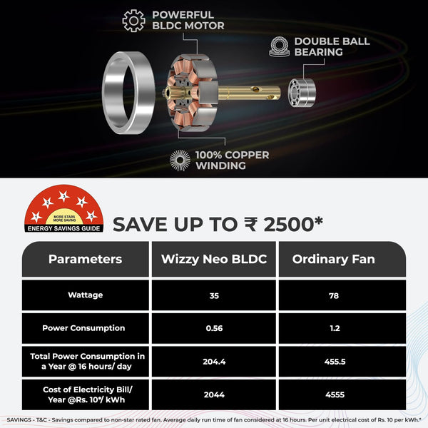 POLYCAB Wizzy Neo 1200mm 5-Star BLDC,Remote Ceiling fan for home| Free Installation| 55% Energy Saving, 100% Copper, High Air Delivery, 6 Speed Setting, Reversible & Timer| 4-yr Warranty【Brown Copper】