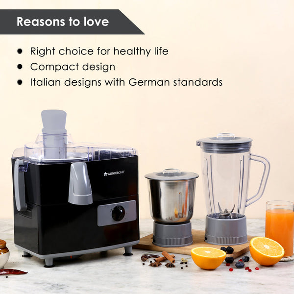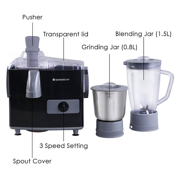 Prato Juicer Mixer Grinder, 500W, 2 Jars, 2 Years warranty, Black