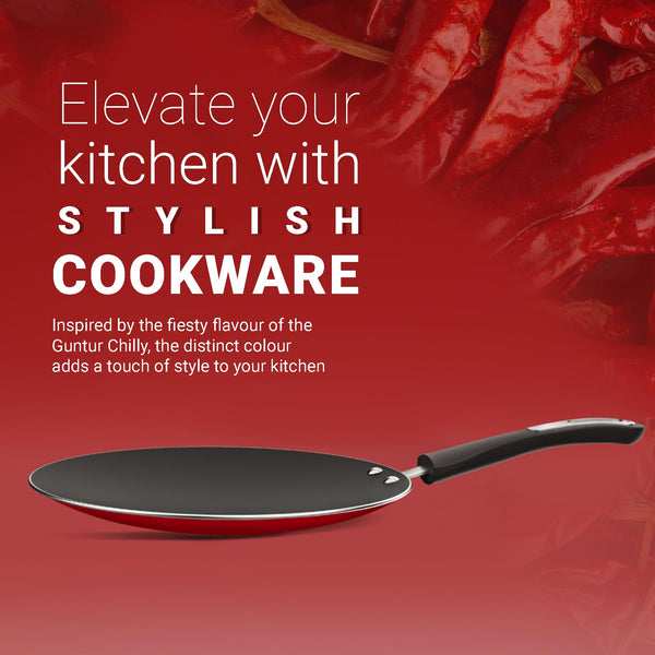 ‎Preethi Dura Collectiona Non Stick Concave Tawa, 28 cm, Gas & Induction Compatible, 5 Star Non Stick Effect, Chilly Red