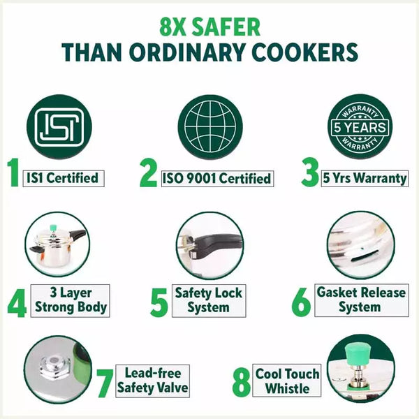 2L+5L RapidCuk Tri-ply Stainless Steel Pressure Cooker Combo+ Free ₹600 Wood Chopping Board, Premium Quality, 3 Layer Thick Body, 5Yr Warranty, ISI Certified, Induction & Gas