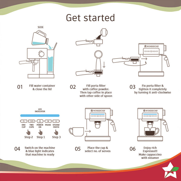 Wonderchef Renewed Regalia Espresso Coffee Maker 15 Bar | Ideal for Espresso, Cappuccino, Latte, Macchiato or Ristretto at Home | Steamer Spout for Cappuccino & Latte | Works with Coffee Powder | Steel