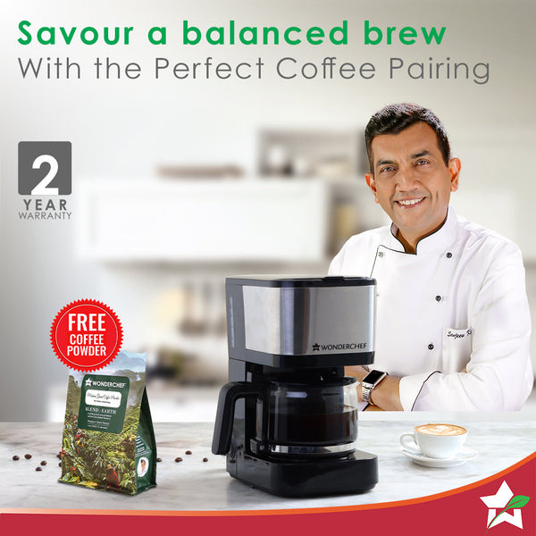 Regalia Pronto Coffee Maker 600W | Coffee Brewer Machine for Home & Office | 750ml Borosilicate Glass Carafe | 3-in-1 Filter Coffee, Espresso, Cappuccino | Auto Shut Off | 6 Cups Coffee | Perfect Gifting Option | Black & Silver| 2 Year Warranty