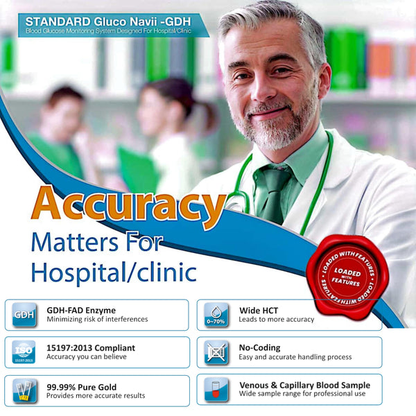 STANDARD Gluco Navii GDH Blood Glucose Monitor with 100 Strips - Glucometer