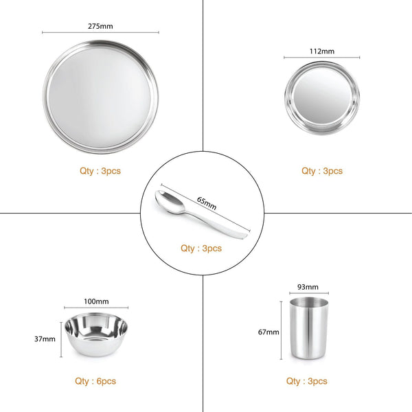 Steelox 18 Pieces Stainless Steel Dinner Set for Family of 3