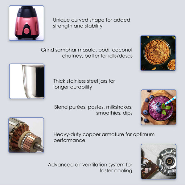 Vietri Mixer Grinder 750W with 3 Thick Steel Jars, Stainless Steel Sharp Blades, Secure Lid, 3 Speed Settings, 5 years Warranty on Motor, Black & Red
