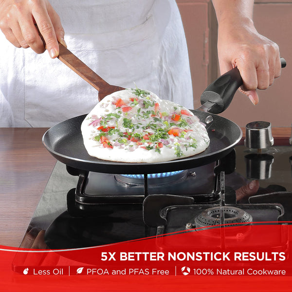 Vinod Cookware Aluminium Zest Marbilo Dosa Tawa, 25cm, Black