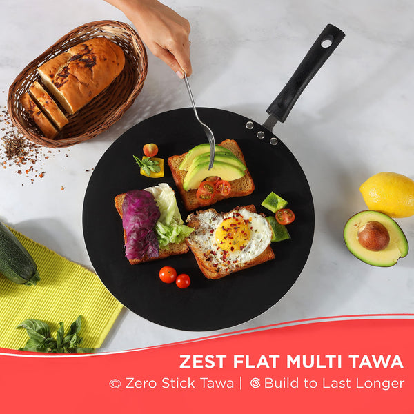 Vinod Zest Aluminium Non Stick Flat Multi Tawa - 30 cm | Triple Layer Ceramic Coating | 4mm Extra Thick Chapati Tawa | Bakelite Handle | Gas and Induction Base | 1 Year Warranty