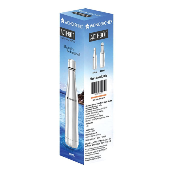 Acti-Bot, 900ml, Stainless Steel Single Wall Water Bottle, Copper Finish, Light Weight, Spill and Leak Proof, 2 Years Warranty