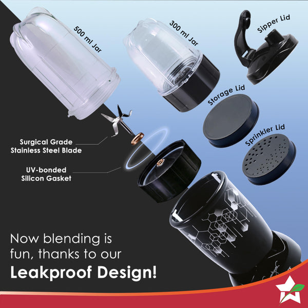 Wonderchef Nutri Blend Photon with Sipper Lid|Mixer, Grinder,Blender & Smoothie Maker|22000 RPM, 400W 100% Full Copper Motor|2 Unbreakable Jars|2 Year Warranty|Recipe book by Chef Sanjeev Kapoor|Black