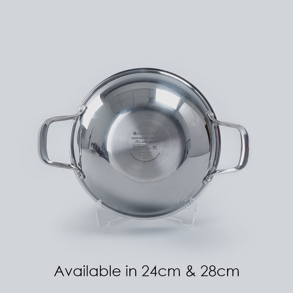 Wonderchef Renewed Stanton 28 cm Non-stick Kadhai/Kadai with Lid - 3.4 Litre | 3 ply steel