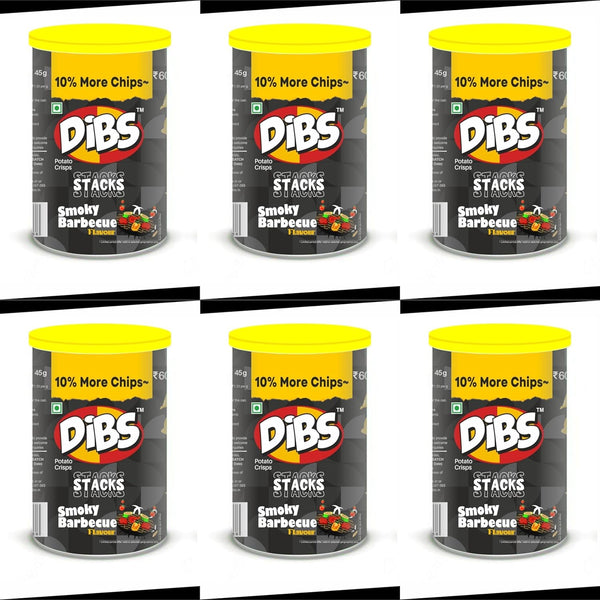 Dibs stacks (Pack of 6, 45 GM Each) Smoky Barbecue Potato Crisps Chips On the Go Adventure, Crunchy Healthy and Tasty Chips, Snacks Chips