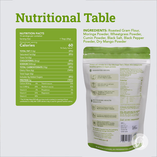 Anveshan Moringa Sattu Drink Mix - 300g | Chana Sattu Protein Powder | Drink | 8 Vitamin and Fibre Rich Nutrition Drink