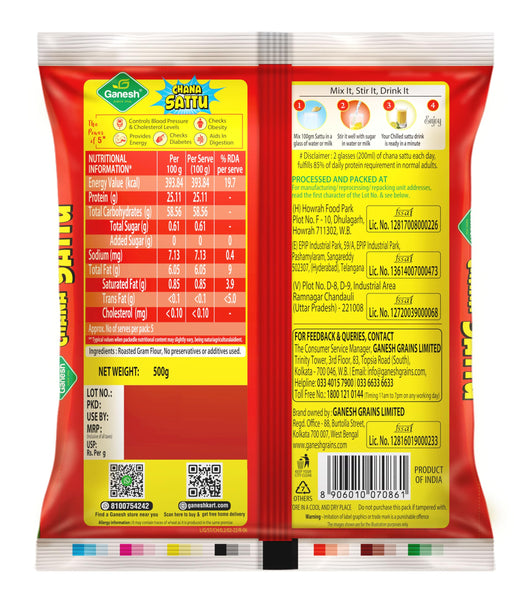 Ganesh chana sattu 500 gm (pack of 2) high protein fibre 100% natural gluten free chana sattu roasted gram powder