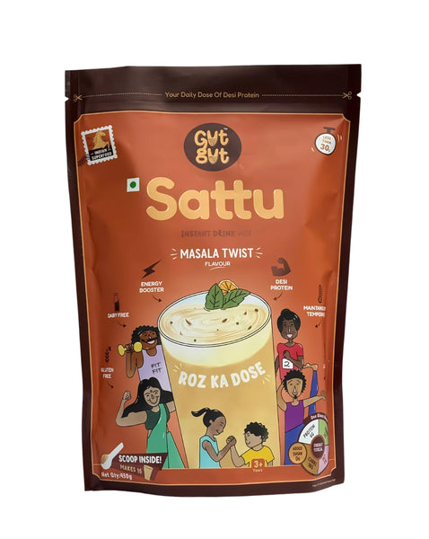 GutGut Sattu Powder | Instant Drink Mix | 100% Natural & Gluten Free Chana Sattu | 30 Glasses 900 grams - Masala Twist Flavour (450g X Pack of 2)