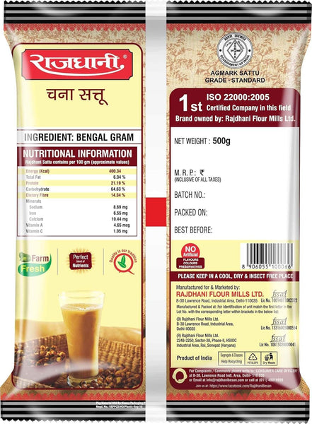Rajdhani Chana Sattu Drink Powder, 500 Gram (Pack Of 2Pcs) | | Gluten Free Roasted Black Chana Flour | 100% Natural & Gluten Free Chana Sattu L