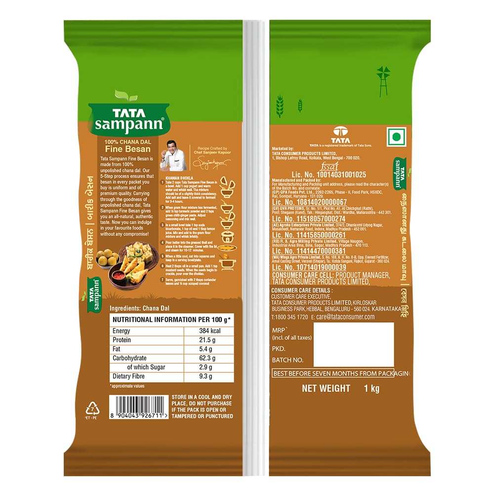 Tata Sampann 100% Chana Dal Fine Besan, Gram Flour, 1 Kg