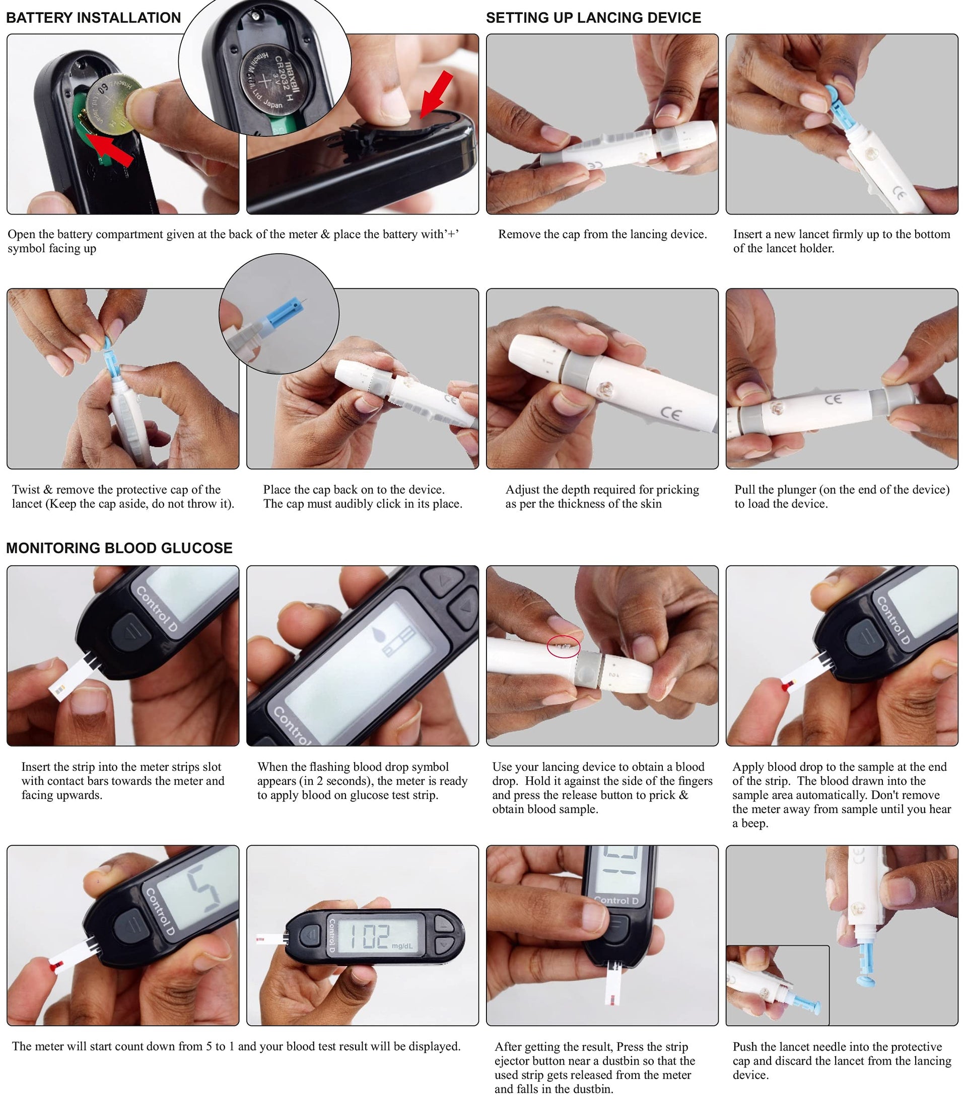 Control D Blood Glucose Monitor (Pack of 100 Strips, White)