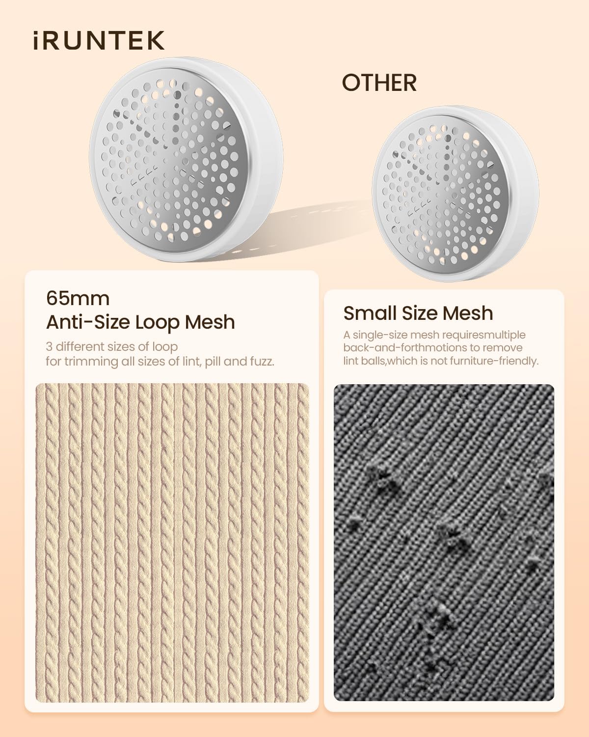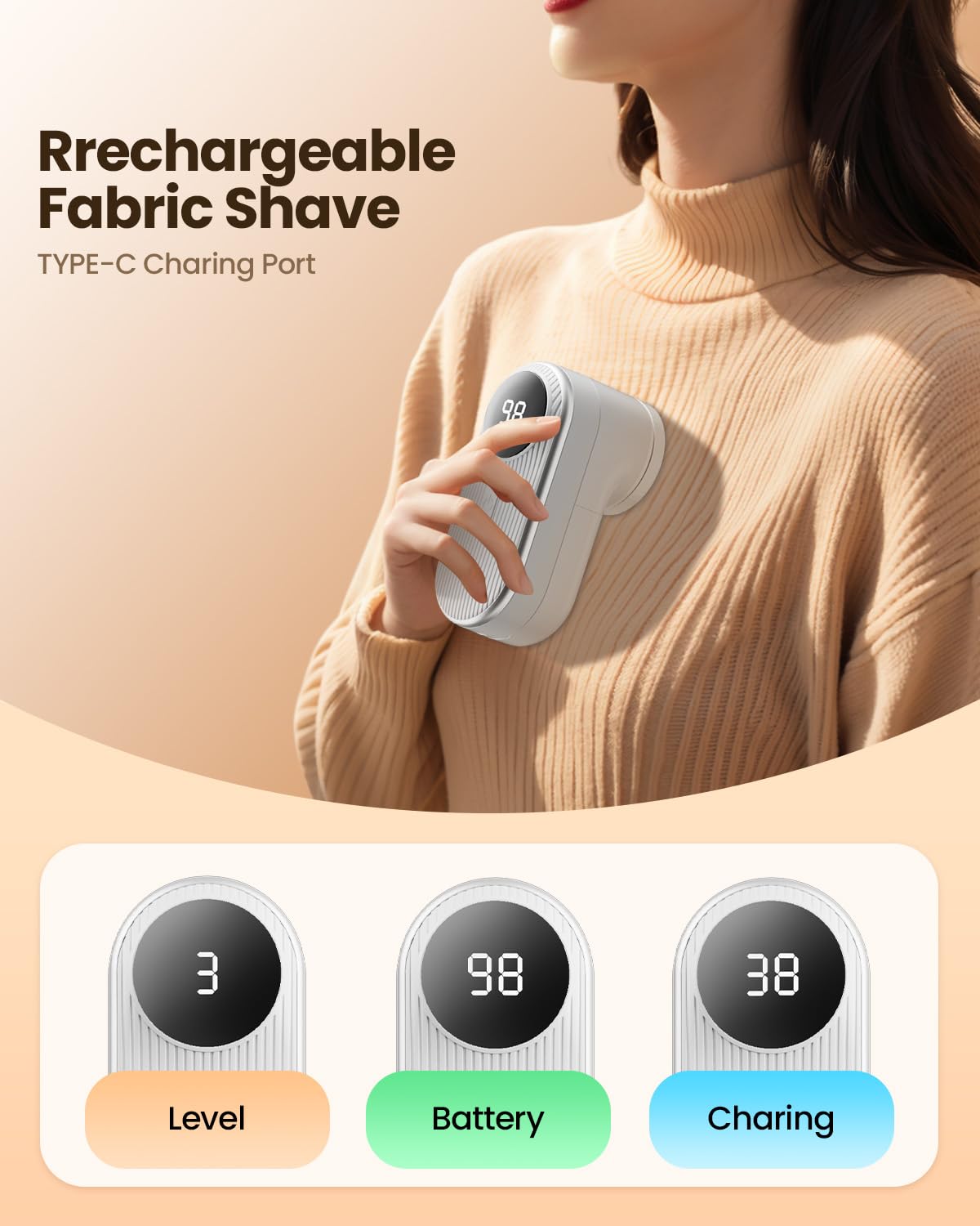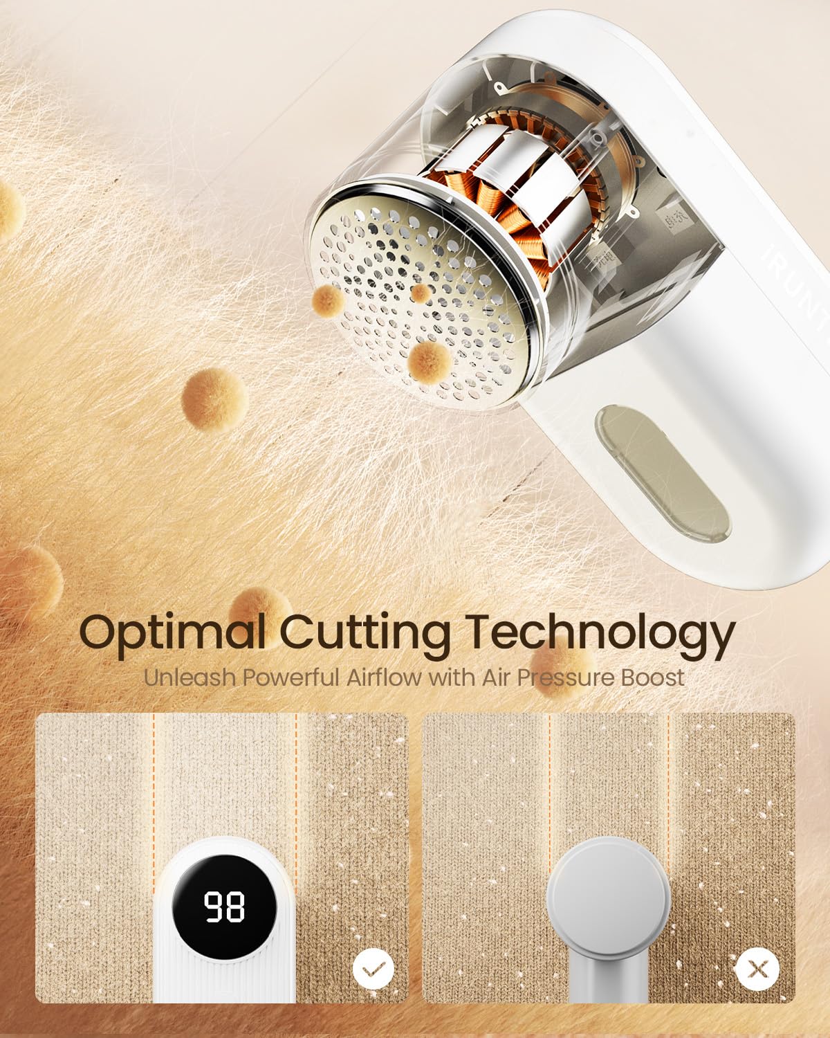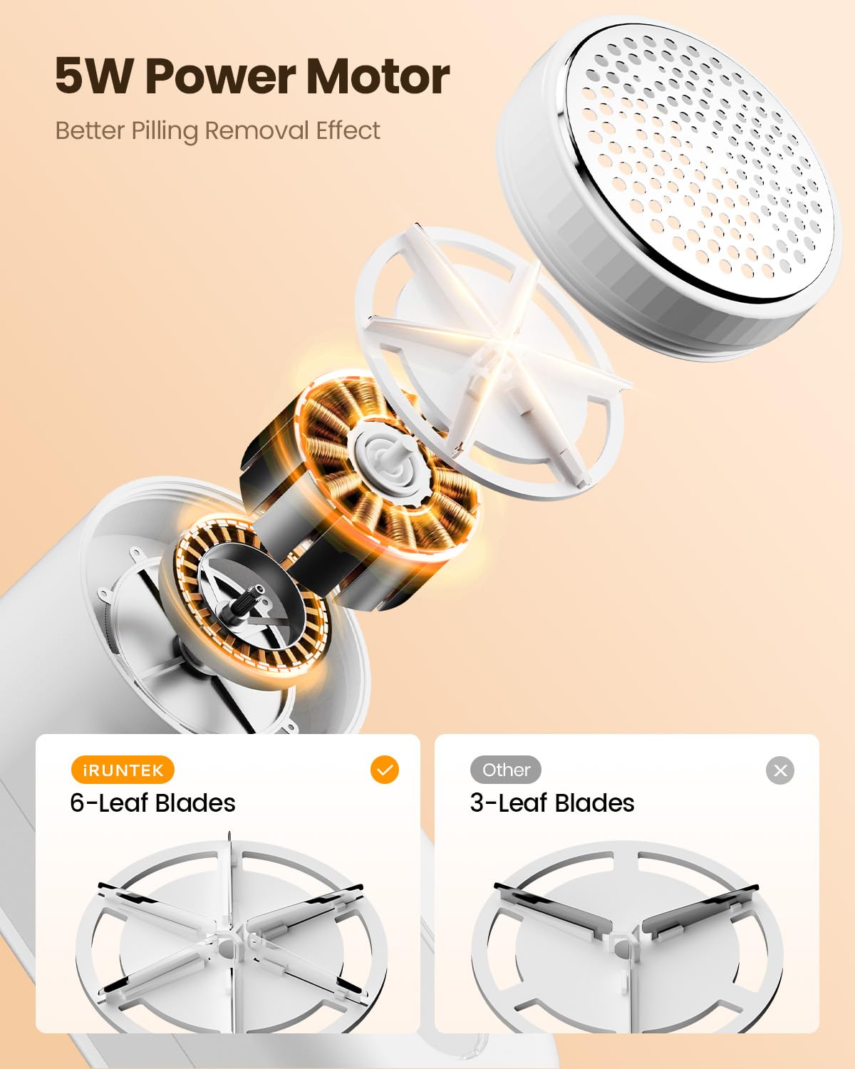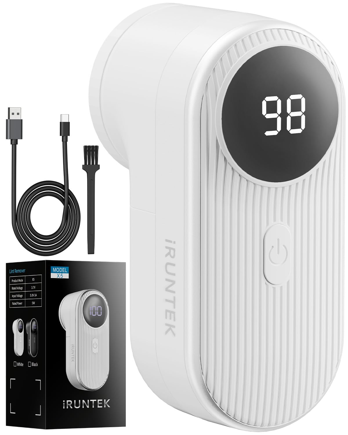 iRUNTEK Lint Remover for Clothes, 5W Electric Lint Shaver with 3 Speeds, Fabric Shaver Rechargeable, Sweater Shaver Brush Fuzz Debobbler for Clothes, Blanket, Carpet, Sofa (White)