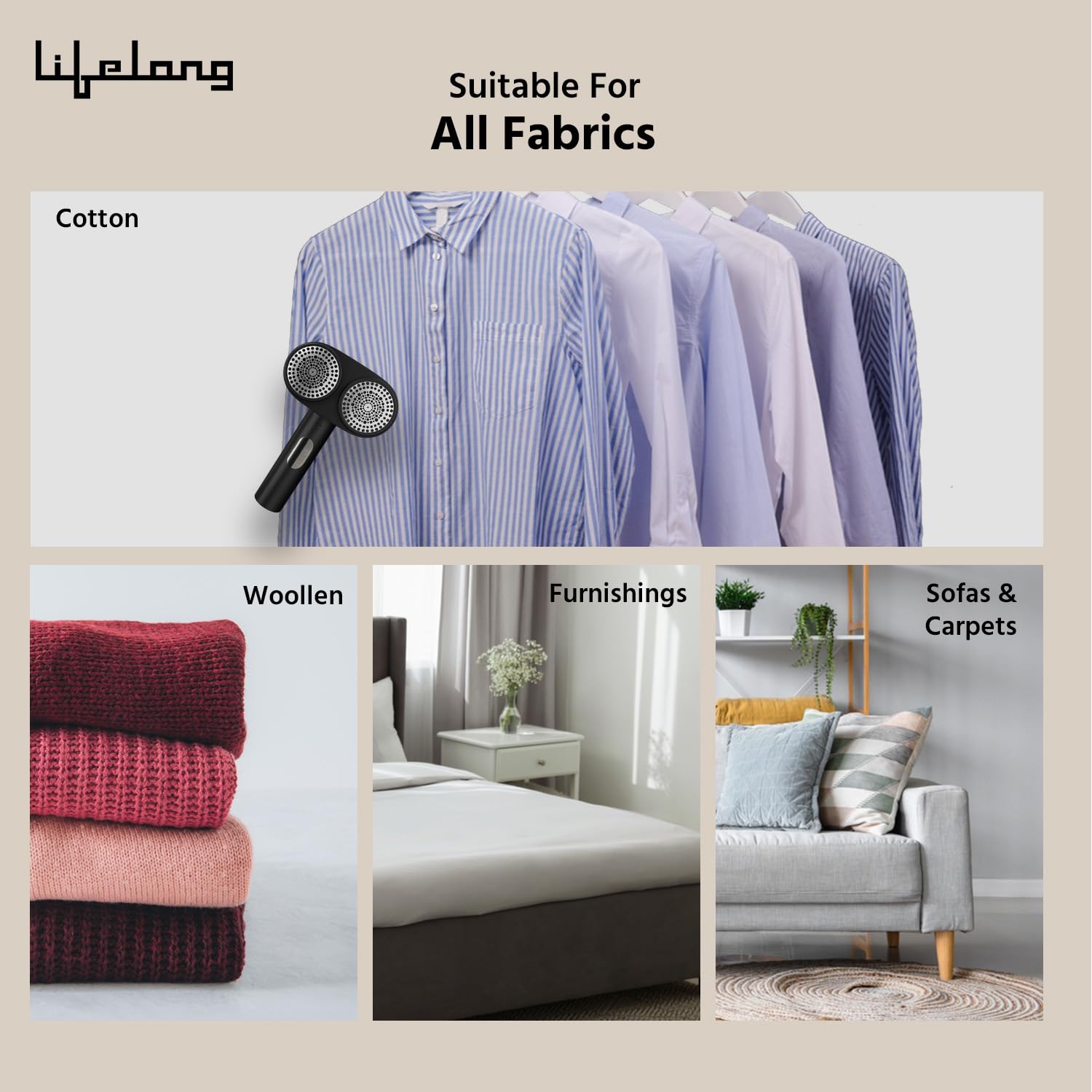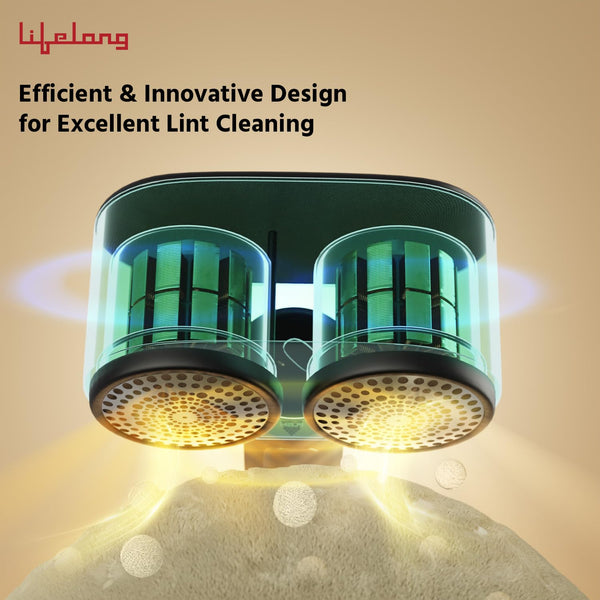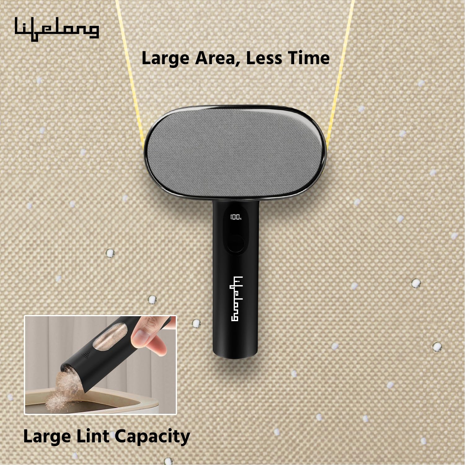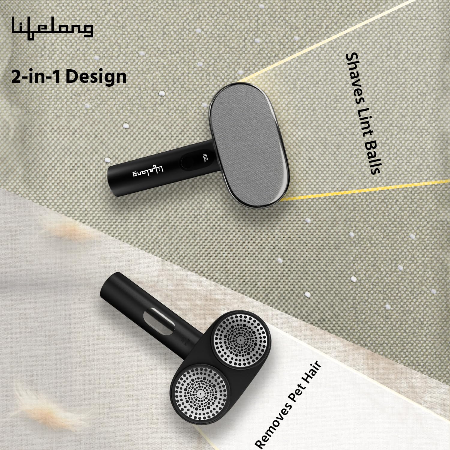 Lifelong 2-in-1 Rechargeable Lint Remover for Clothes with Brush - Double Head - LED Display - Fabric Shaver for Woollen Sweaters, Cotton Clothes, Sofas - Dust & Pet Hair Remover - 3 Speeds (LLELR36)
