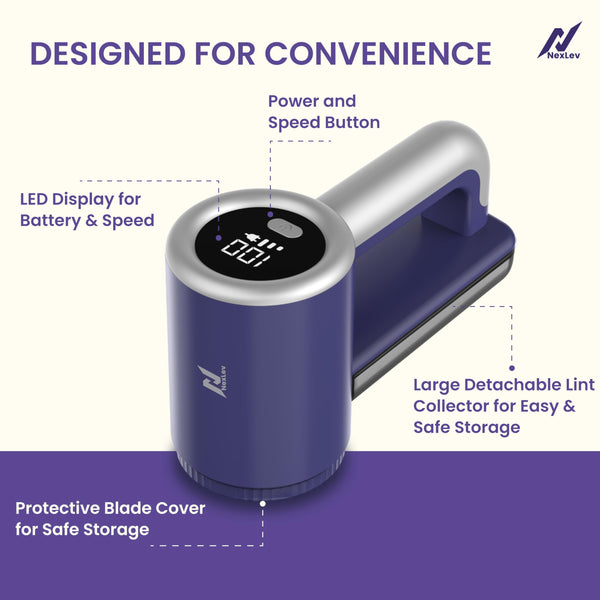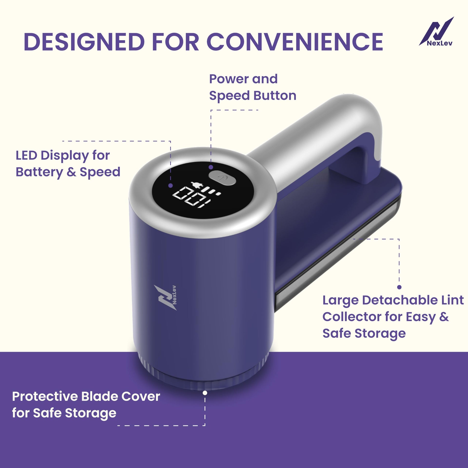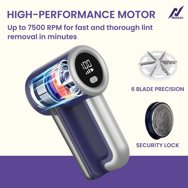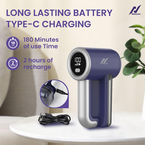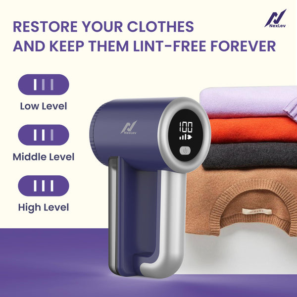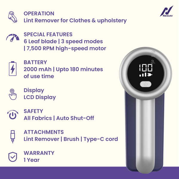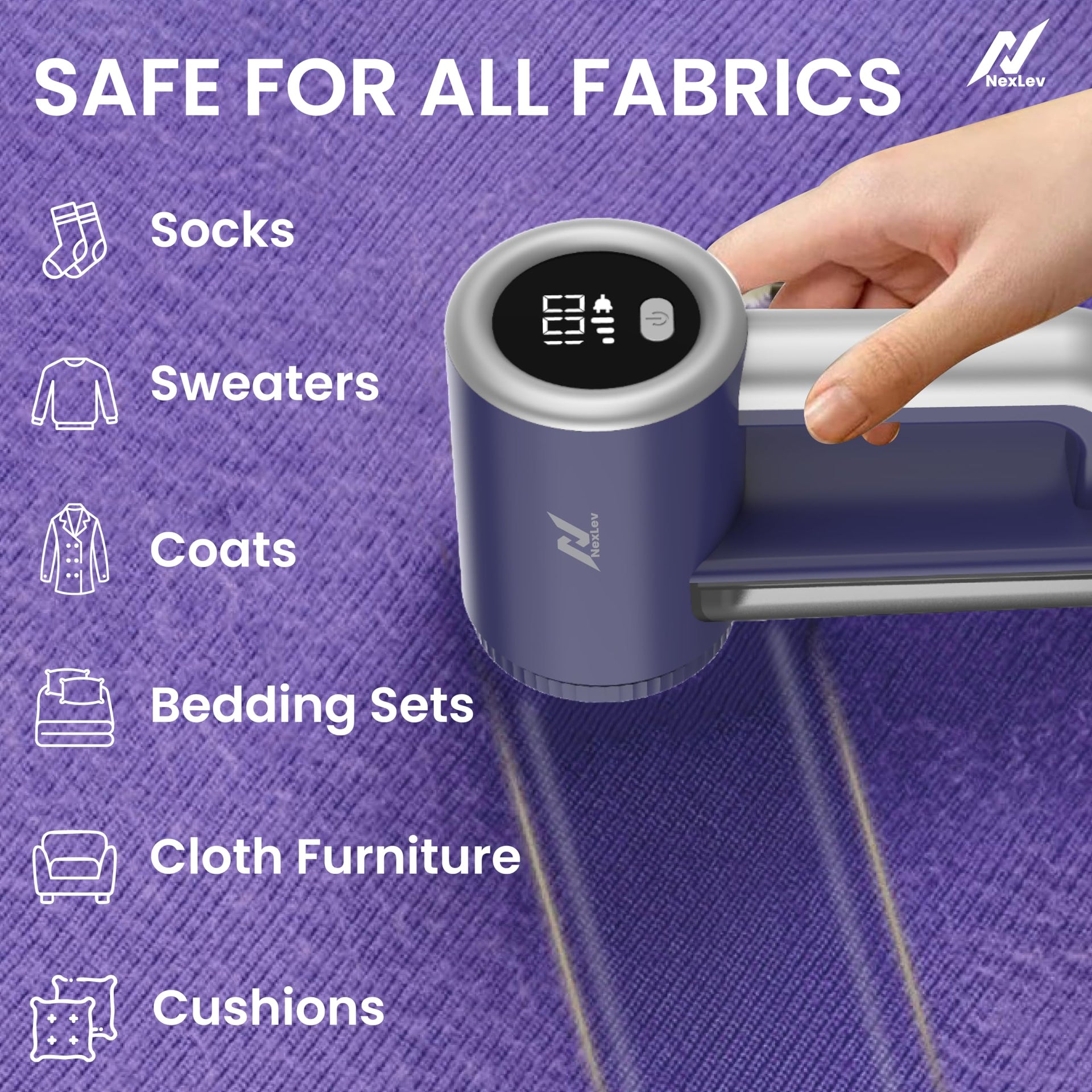 Nexlev Lint Remover & Fabric Shaver | Sofa, Blanket & Clothes |Digital Display| 6 Stainless Steel Blades| 3 Speed Modes| Heavy Duty| 120Mins Usage| Large Tank | Type C| 2000 mAh Battery | LR-02 (Blue)