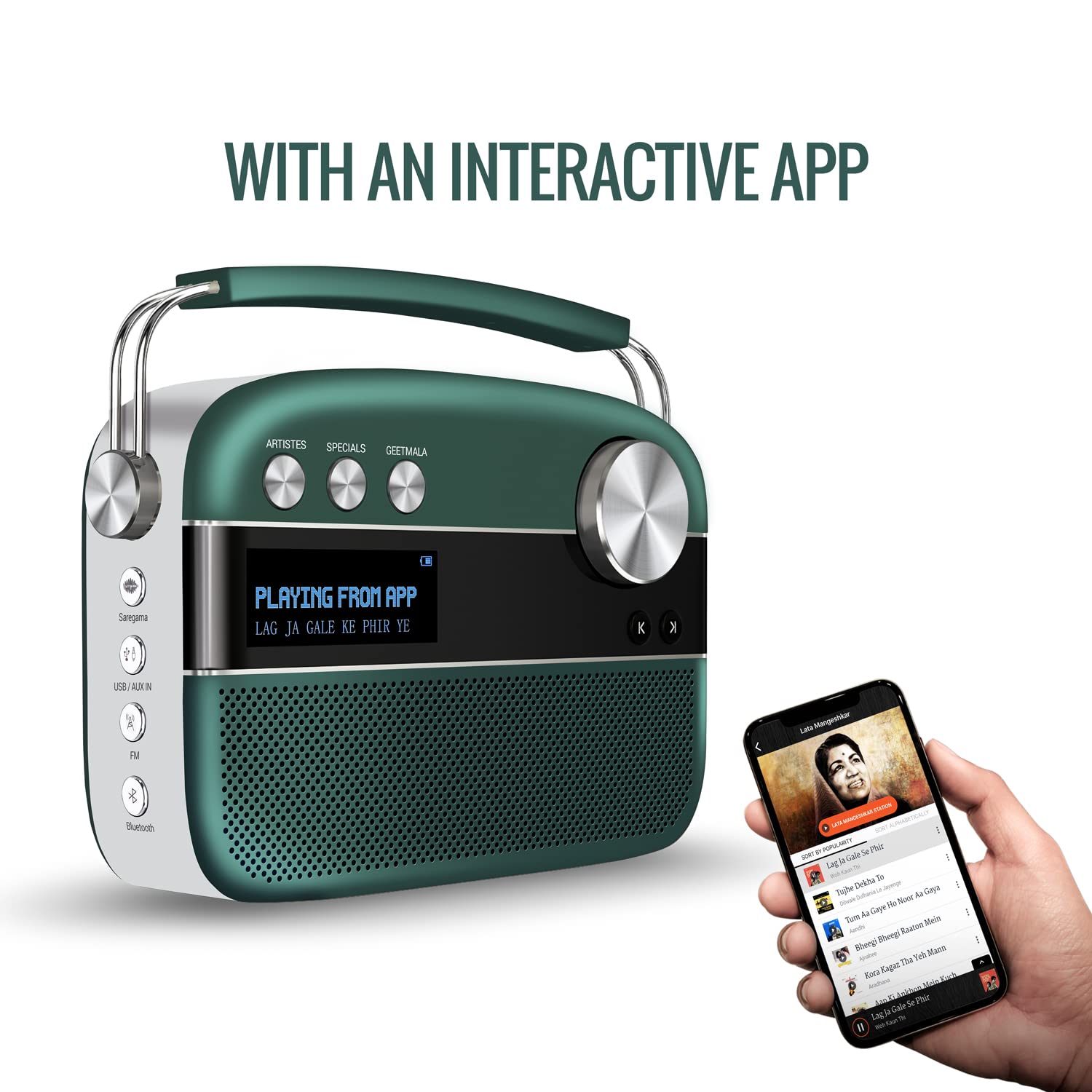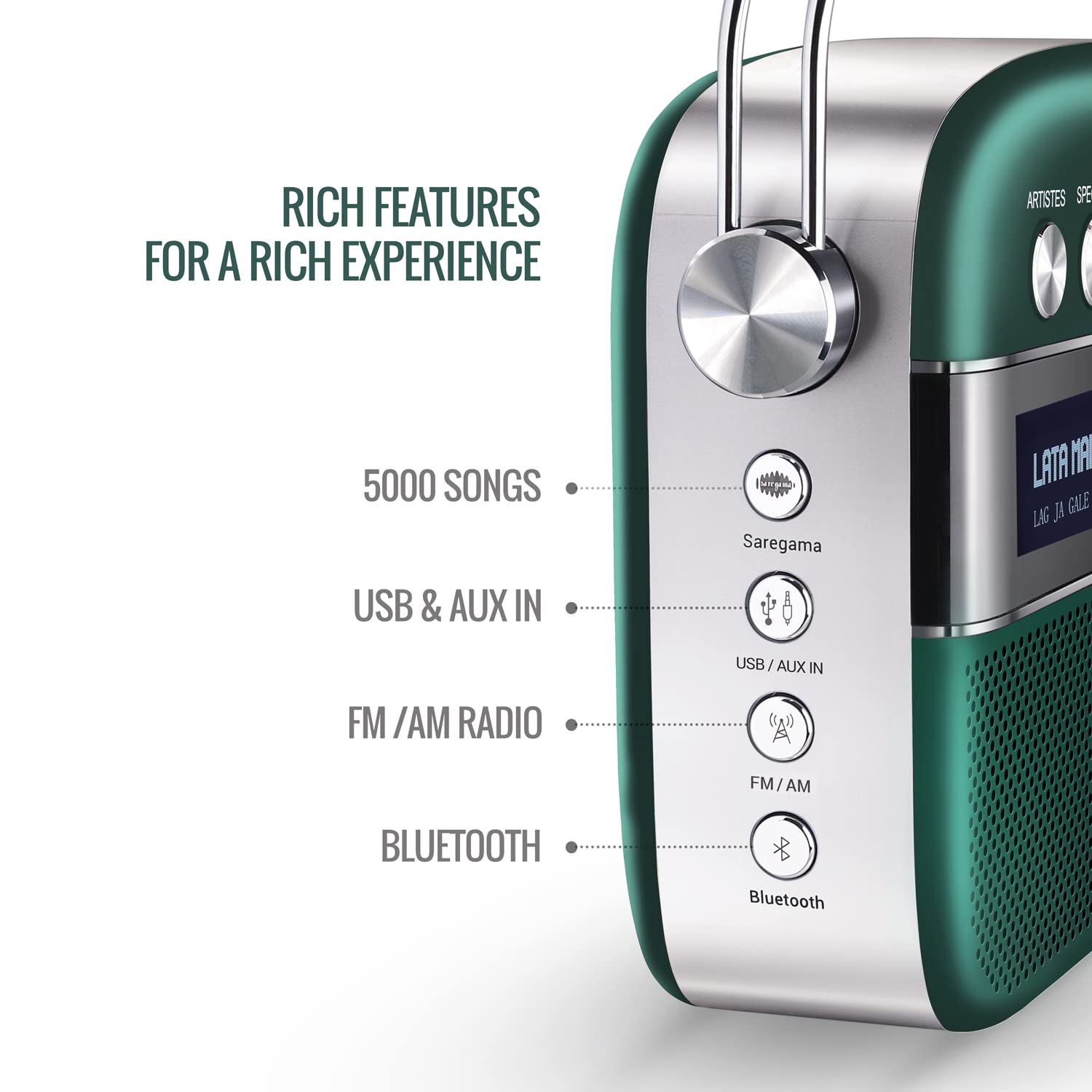 Saregama Carvaan Premium Hindi - Portable Music Player with 5000 Preloaded Songs, FM/BT/AUX (Emerald Green)