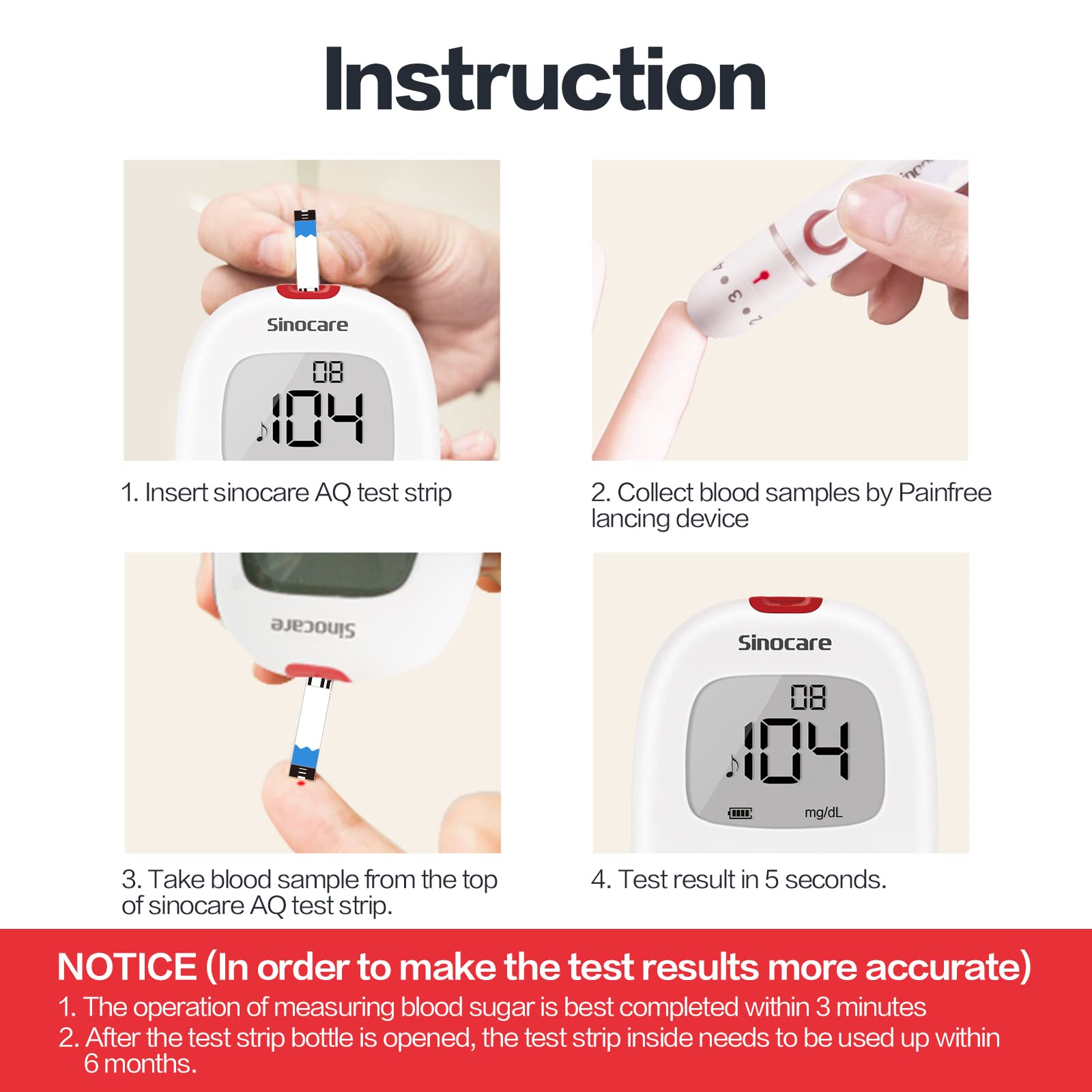 Sinocare PTS(USA) Diabetes Testing Kit/Blood Glucose Monitor Safe AQ Voice/Glucometer with Voice Reminder and Light Warning/Blood Sugar Test with 50Strips & 50Lancets & Case Pack