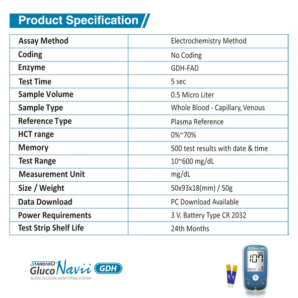 STANDARD Gluco Navii GDH Blood Glucose Monitor with 100 Strips - Glucometer