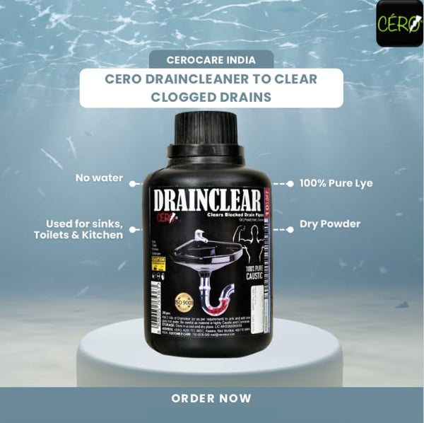 CERO ® DRAINCLEAR 1.45% WW (DRY POWDER) to Clear Clogged Drains, Sinks and Pipes (190 gm)