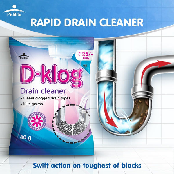 D-Klog Drain Cleaner Powder (40g x 8 Units), Removes Clogs, Blockages in Washbasin, Septic Tank, Sinks, Pipes within 30 mins.Drain expert | Sink cleaner| Toilet Cleaner | No manual hassle required