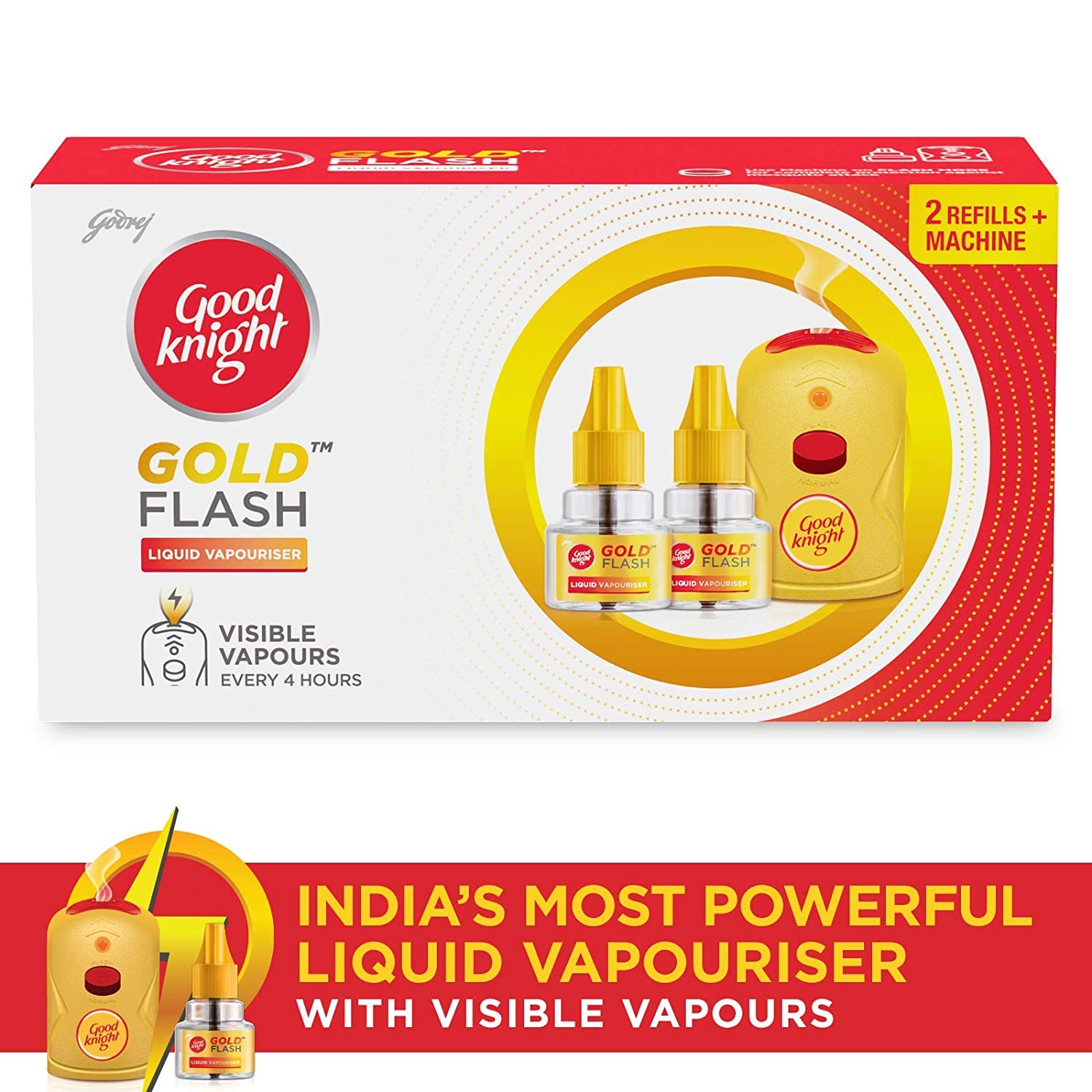 Good knight Gold Flash Liquid Vapourizer | Mosquito Repellent Combo Pack | Machine + Pack of 2 Refills (45ml Each)