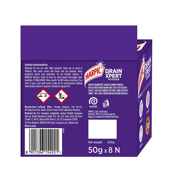 Harpic Disinfectant Bathroom Cleaner Liquid, Lemon - 1L + Harpic Drain Xpert Drain Cleaning Powder (50g x 8)